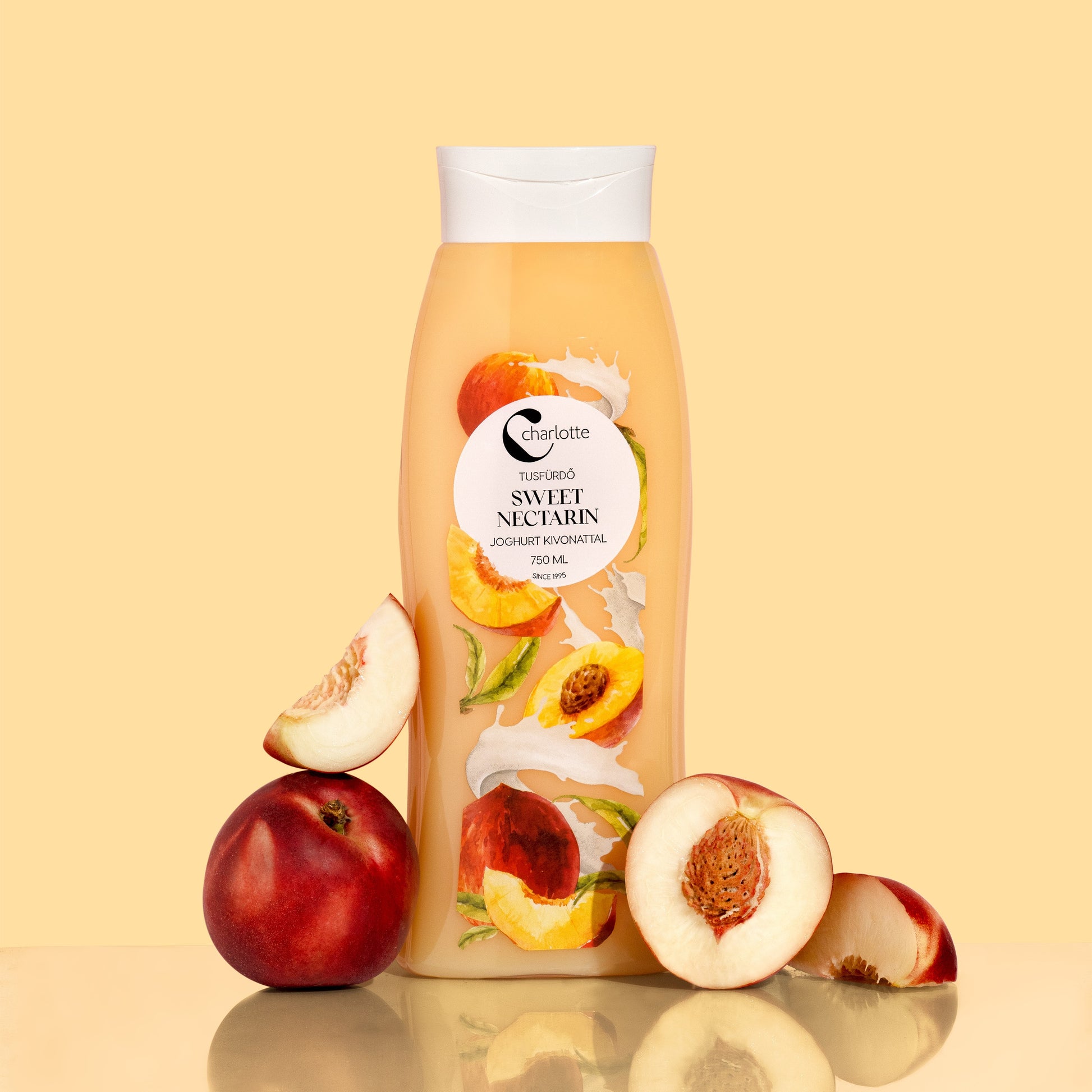 A friss nektarin illat és a hidratáló joghurt kivonat ötvözete